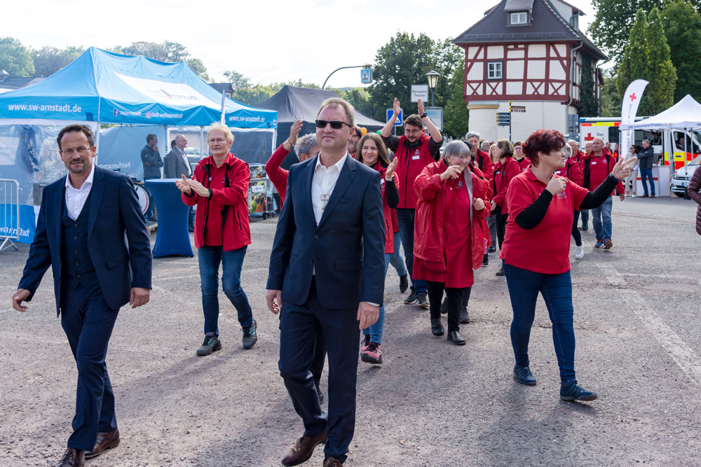Das Festzelt war der Mittelpunkt der guten Stimmung. Die „Liebensteiner Musikanten" aus Gräfenroda sorgten für musikalische Unterhaltung, während prominente Gäste wie die Landrätin des Ilm-Kreises, Petra Enders, und die Bürgermeister von Arnstadt und Stadtilm herzlich begrüßt wurden. Höhepunkt des offiziellen Teils war die Verleihung mehrerer Auszeichnungen der VWG, begleitet von unterhaltsamen Anekdoten des Vorstandsvorsitzenden Mario Hörold.