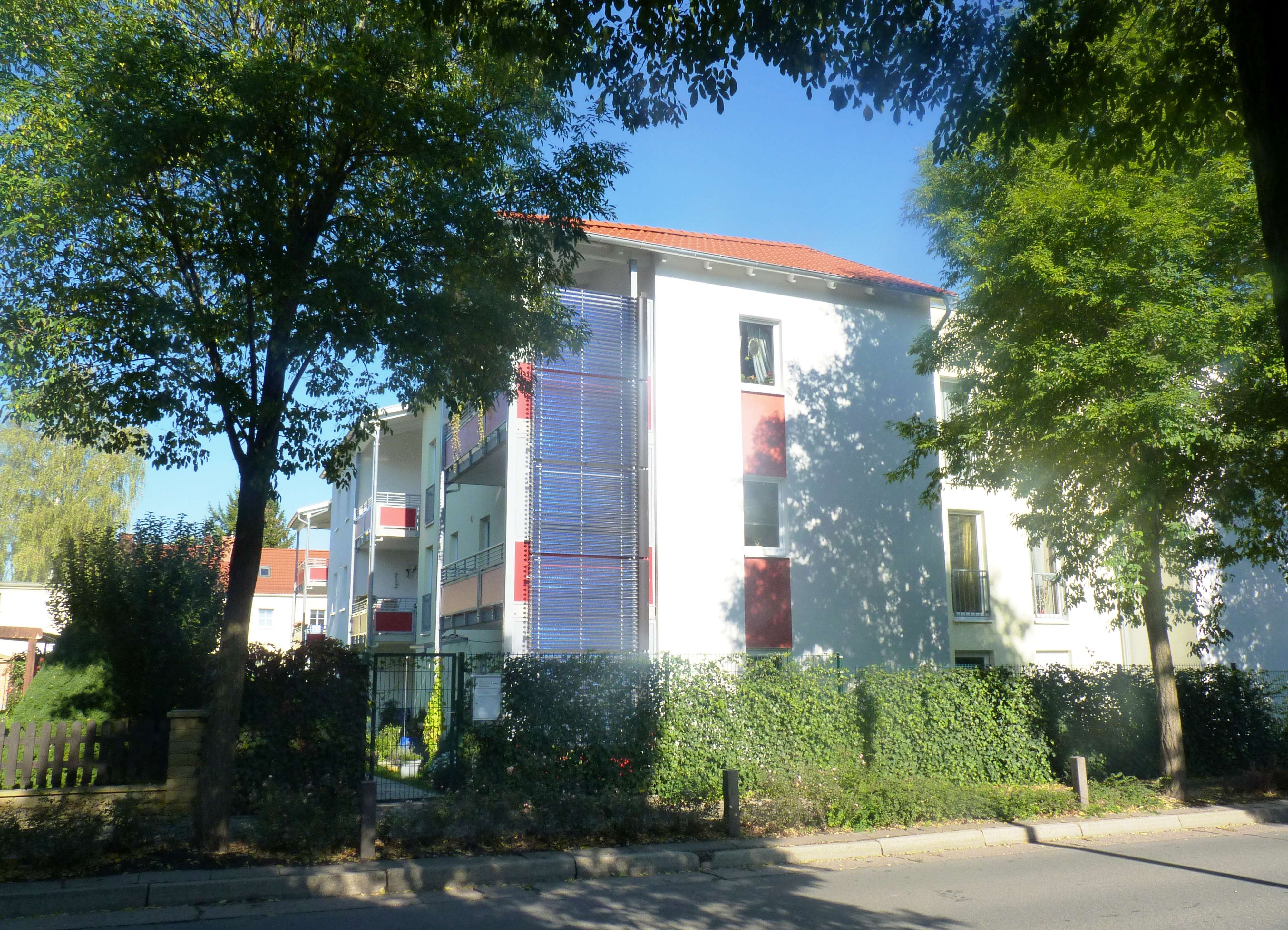 Bei der Heinrich-Heine-Straße 4 handelt es sich um ein 2007 gebautes 3-geschossiges Gebäude mit insgesamt 16 Wohnungen. Diese sind ringförmig um einen Aufzug mit begrünten Innenhofbereich angeordnet. Alle Wohnungen sind bei Bedarf stufenlos erreichbar. Eine großzügige Dachterrasse, ein Trocken- und ein Fahrradraum stehen der Mietergemeinschaft zur Verfügung.