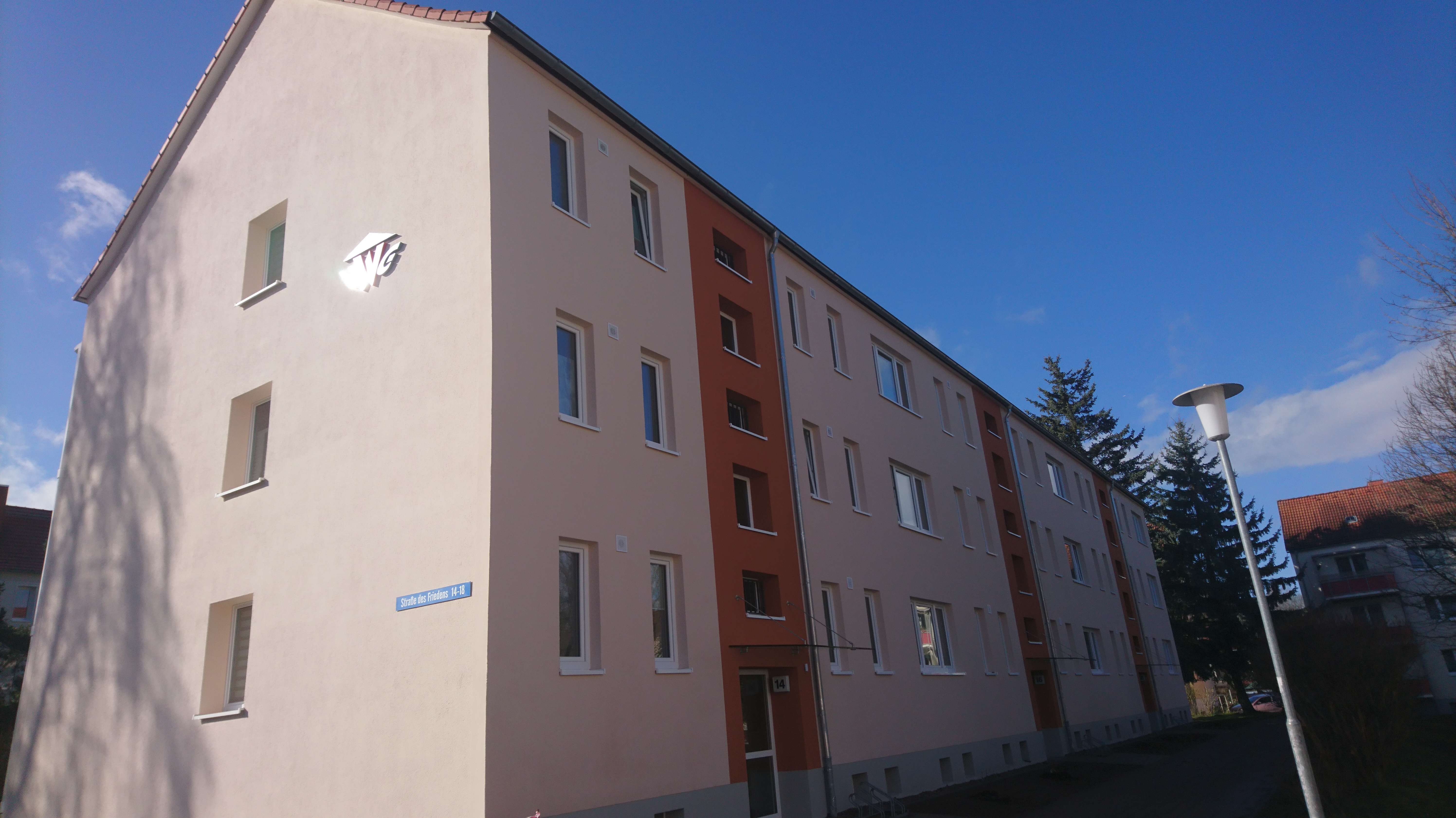 Bei der Straße des Friedens 14-18 handelt es sich um ein 3-Geschossiges Gebäude mit insgesamt 18 Wohnungen.